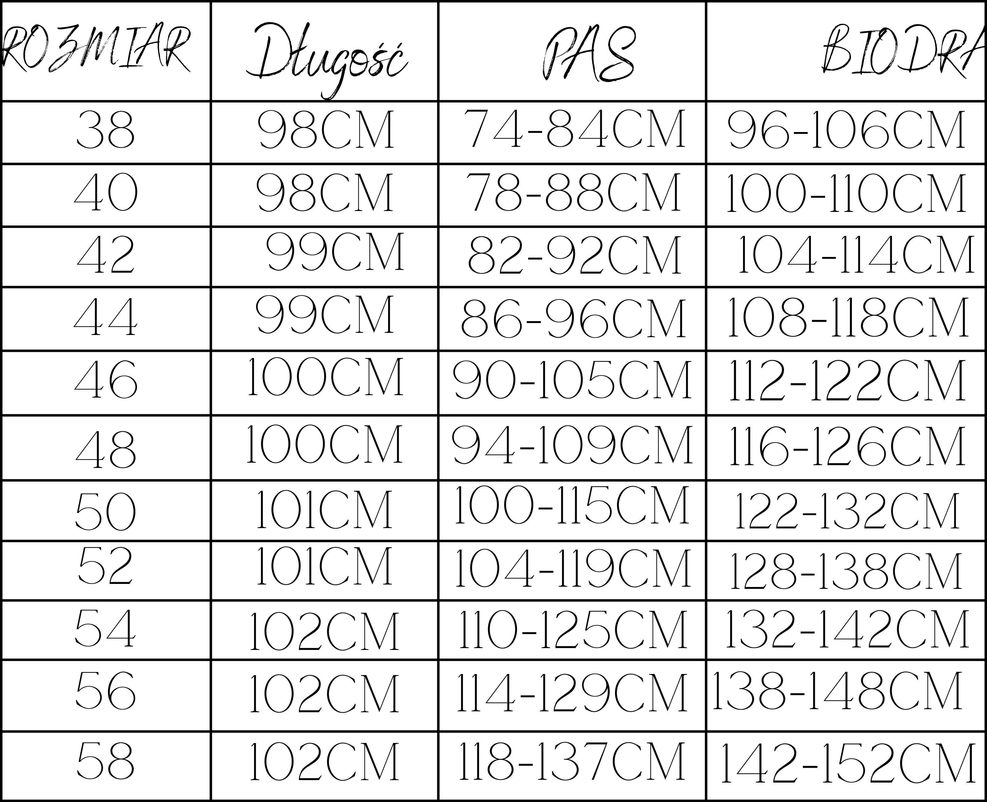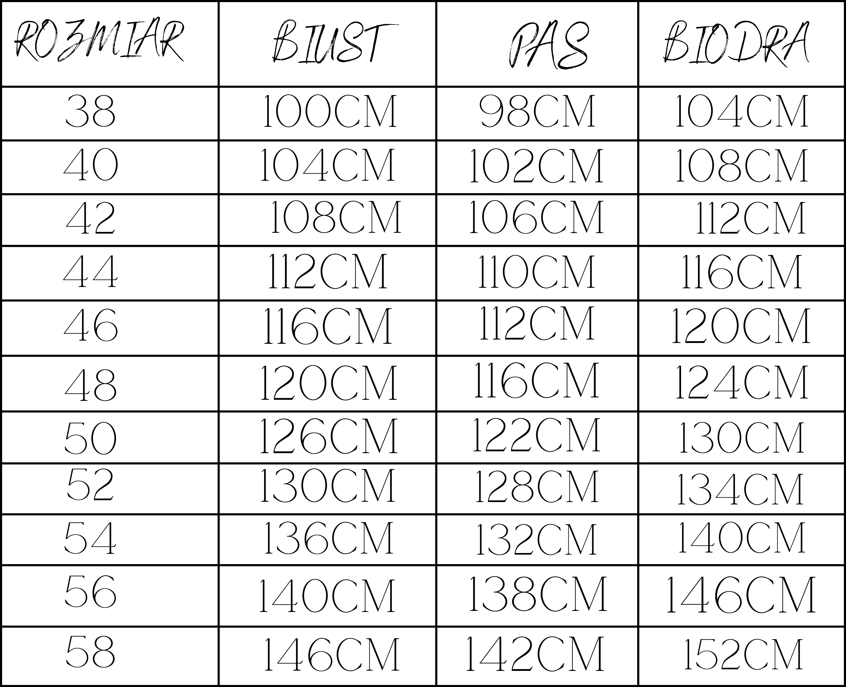 TABELA ROZMIARÓW