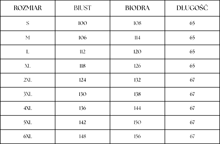 TABELA ROZMIARÓW