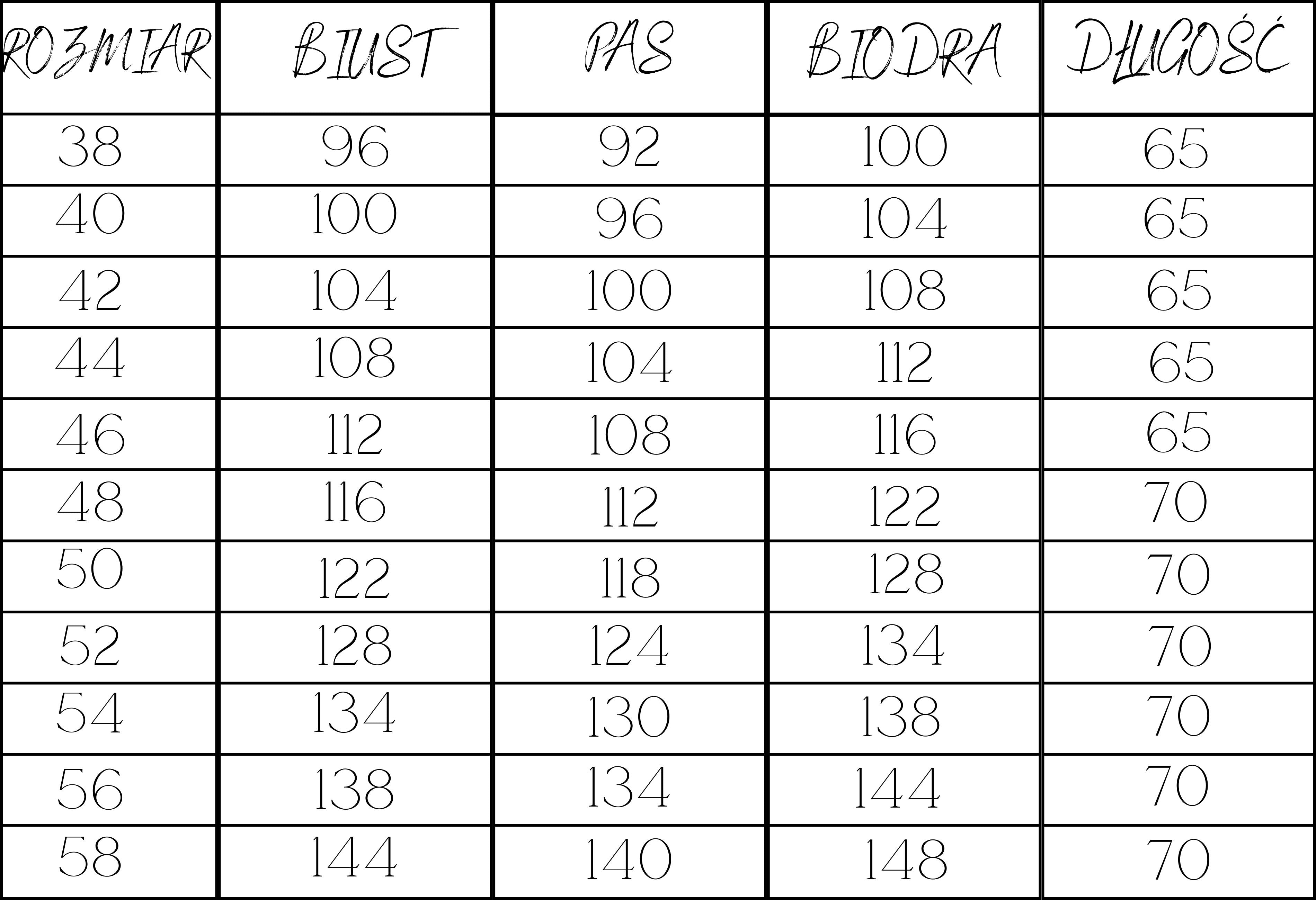 TABELA ROZMIARÓW